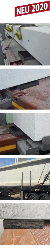 Durch die zertifizierten Reibbeiwerte der Antirutschmatte auf der Klotzober- und unterseite ist eine genaue Berechnung der gesetzlich vorgeschriebenen Sicherungsmittel möglich!