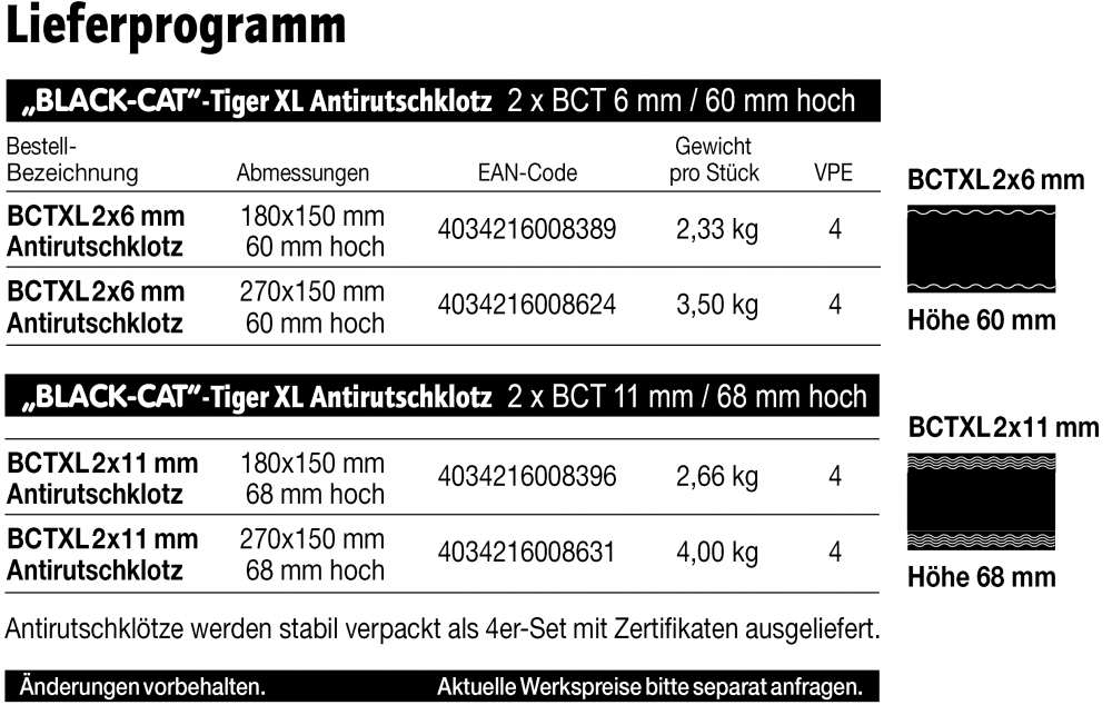 BLACK-CAT Tiger-XL Antirutschklotz ist das neue, in Deutschland gefertigte Spitzenprodukt für höchste Ladesicherheit bei Schwertransporten.