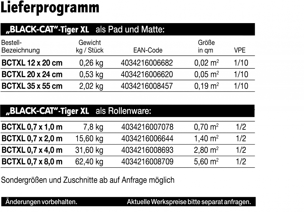BLACK-CAT Tiger XL in 11 mm Materialstärke ist ein Sonderprodukt und daher keine reguläre Lagerware. Lieferzeiten daher auf Anfrage.