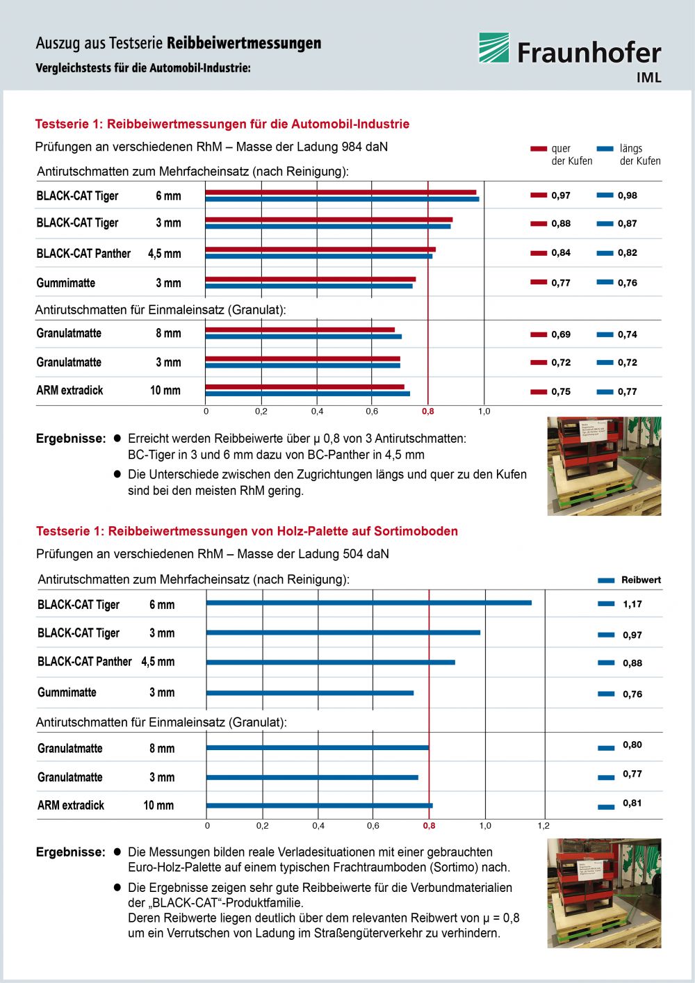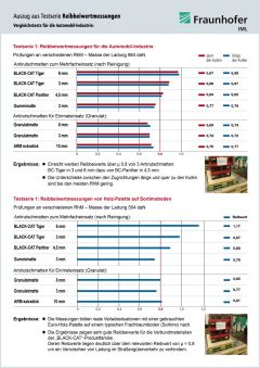 Prüfzeugnisse sind für die Information des Anwenders zur genauen Ermittlung der gesetzlichen Vorgaben in der Ladungssicherung. Prüfzeugnisse sind nicht auf andere Antirutschmatten übertragbar.